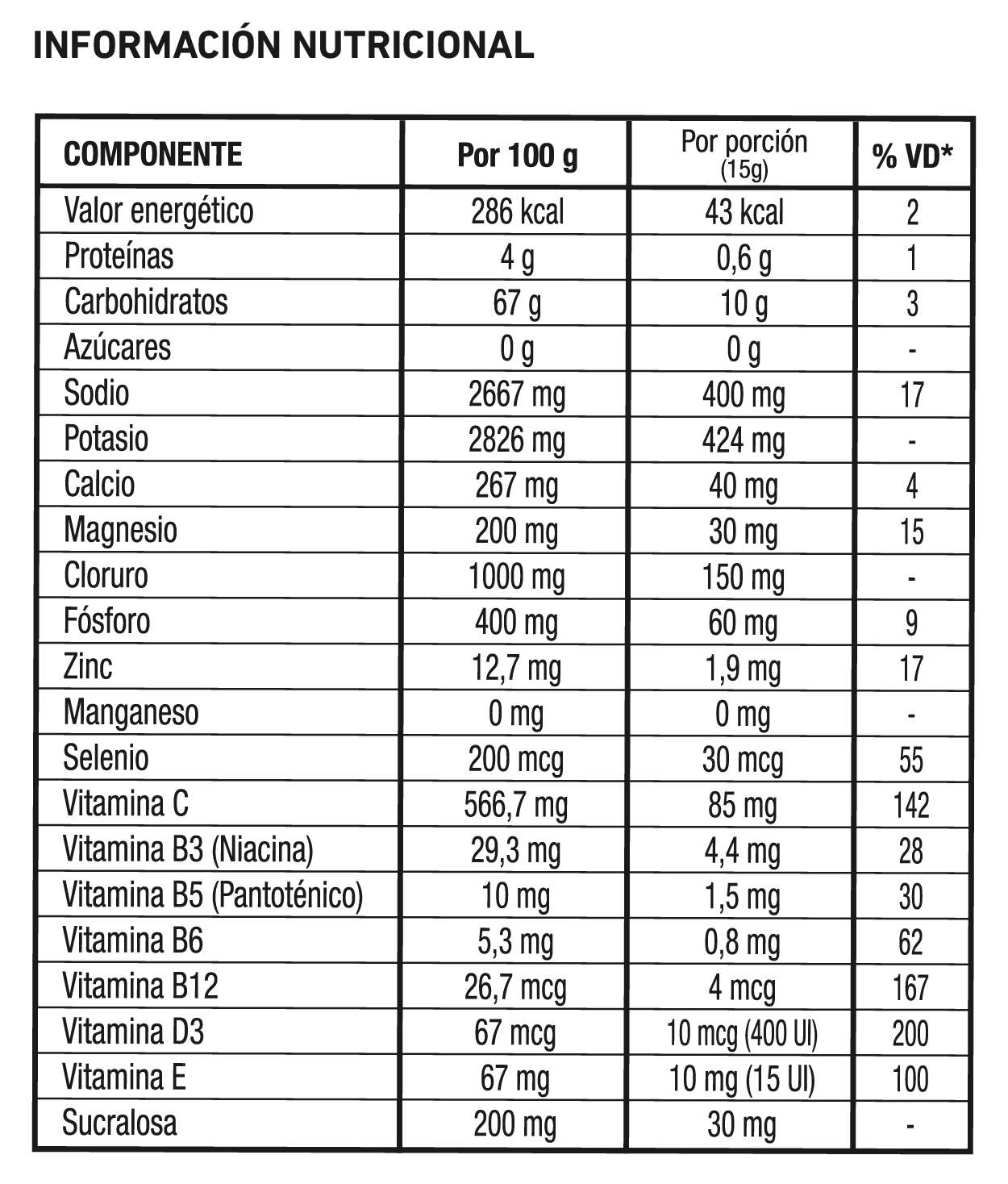 • Reposición rápida de electrolitos: Sodio, Potasio, Calcio, Magnesio, Cloruro y Fósforo.
